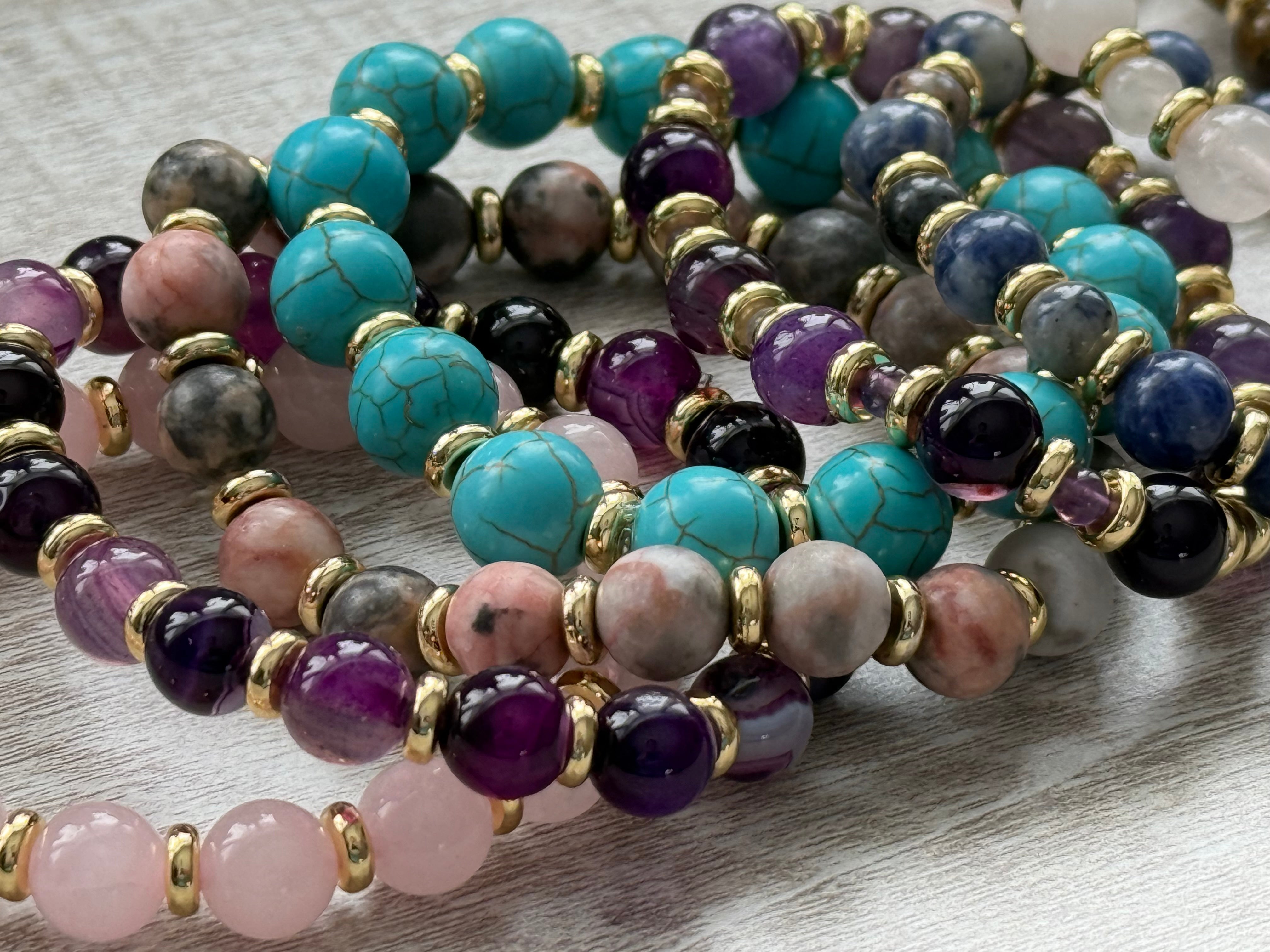 3 Piece Beaded Bracelet Set, Mixed Metal, 14k Gold Plated & Sterling Silver Plated Beads.
